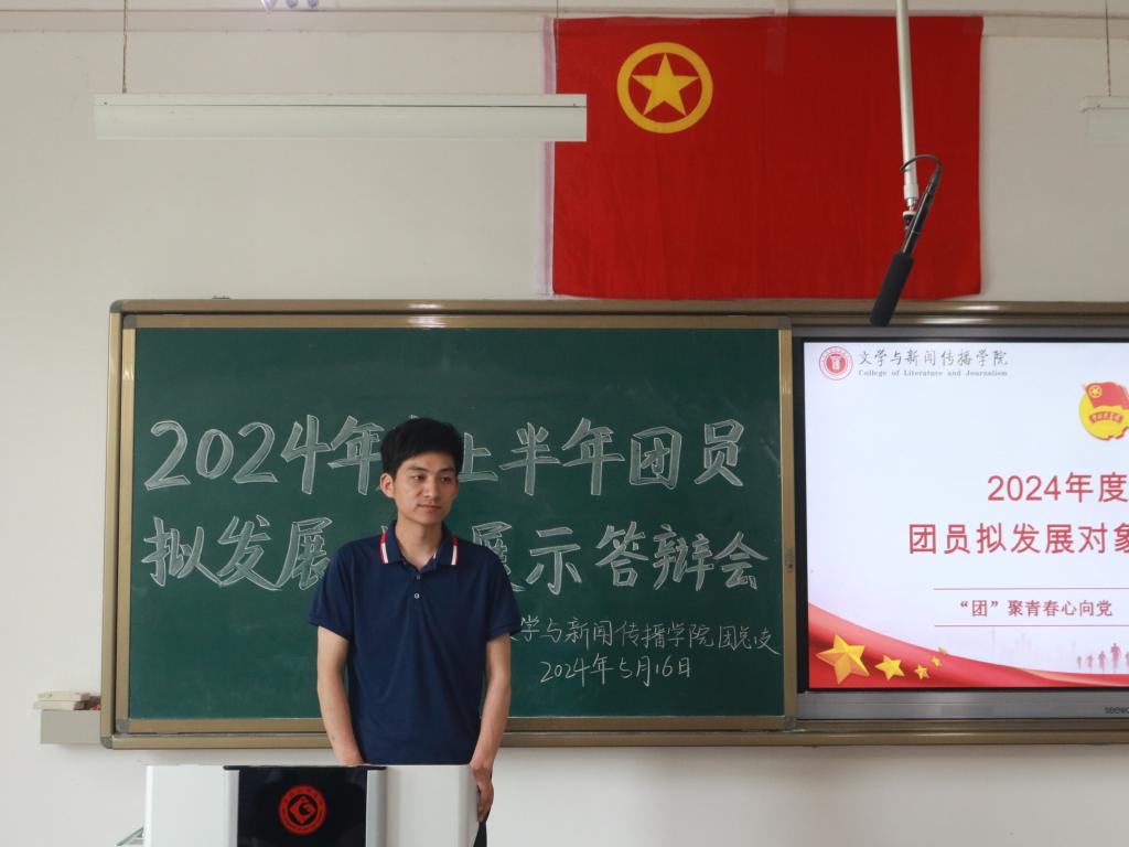5月16日上午,太阳集团tyc138在高新校区博文楼705教室举行了2024上半年团员拟发展对象答辩会。本次活动由学院组织员洪嘉星,团总支书记马晓,学生干部石嘉豪、郭一萍、尹雪堃、叶瑞言担任评委。