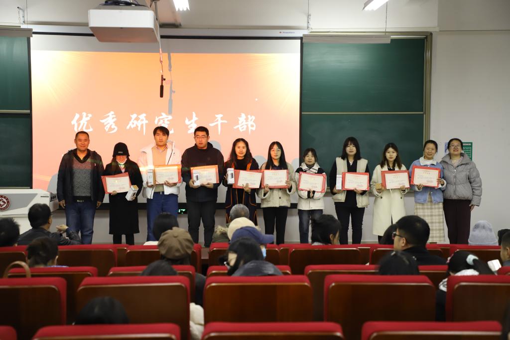 活动开始,副院长孙新峰宣布获奖同学名单,兰拉成院长等为荣获2023年度研究生学业标兵、科研标兵、教学(技能)标兵、写作标兵及优秀研究生干部的同学颁奖。
