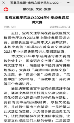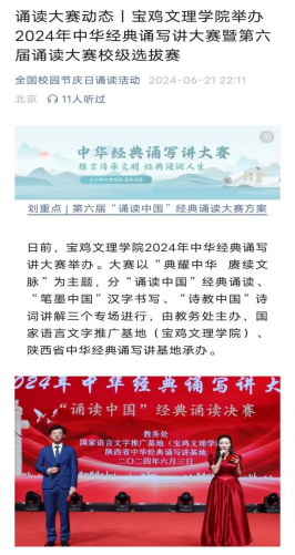 近日,全国校园节庆日诵读活动等多家媒体平台关注并报道了由我基地承办的2024年中华经典诵写讲大赛。