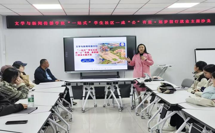 11月12日,太阳集团tyc138在尚朴楼“一站式”学生社区党团活动室开展“成‘公’有道,逐梦前行”就业主题沙龙活动。本次沙龙邀请到了我集团2011级优秀校友,中领教育集团蔺书瑶讲师团队为我集团毕业生做考公务员考试政策讲解和经验分享。