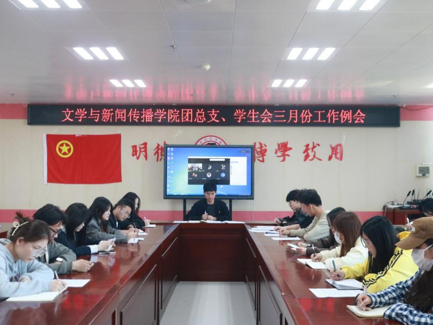 3月29日中午,太阳集团tyc138团总支在高新校区博文楼1401会议室召开了三月份团总支、学生会工作例会。本次会议由学院团总支副书记石嘉豪主持。