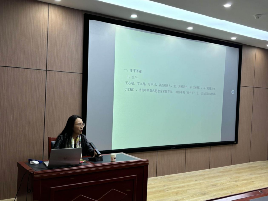 11月14日下午14:30,陕西师范大学文学院副院长、博士生导师王晓鹃教授应我集团邀请,于博文楼1602教室作了题为“关学名儒王心敬示儿诗探析”的学术报告。报告由我集团院长孟改正教授主持。