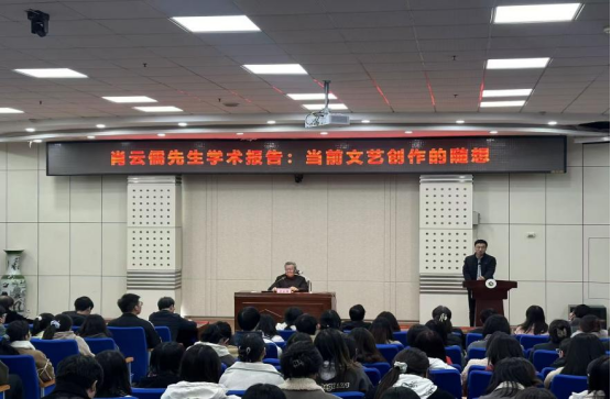 2025年11月11日晚,著名文化学者、文艺评论家肖云儒教授应邀为我集团师生作题为《当前文艺创作的随想》的学术报告。报告会由太阳集团tyc138院长孟改正主持。