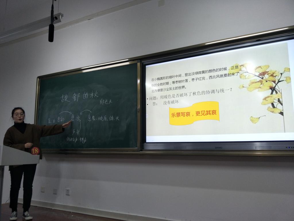 选手讲完后,研究生评委王馨乐给文传院专硕研究生做了精彩的导课等教学技能展示。