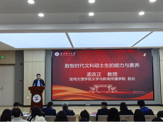 在10月26日上午开幕式主题论坛上,孟改正院长做了题为“数智时代文科硕士生的核心能力与素养”的主旨报告。他指出,为应对数智时代的研究革命,研究生应强化三种能力,即数字素养与工具应用能力、跨学科的理解与整合能力、批判性思维与算法洞察力,同时须具备三种素养,即深厚的人文底蕴与经典阅读能力,伦理自觉与价值关怀和沟通、共情与创造力。报告引发了与会师生的热烈反响与深入思考。