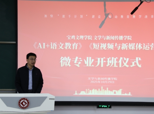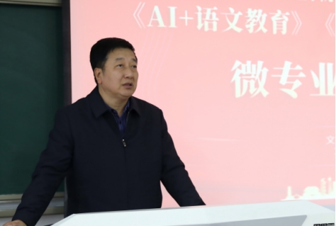 院长孟改正对微专业建设和发展作工作部署。他表示,学院两个微专业的设立是学院推动学科交叉融合、对接行业前沿的关键一步。“AI+语文教育”微专业面向教育数字化战略,推动人工智能与语文教学深度融合;“短视频与新媒体运营”微专业则聚焦区域文旅推广与新媒体传播,强化实战能力培养。他鼓励同学们珍惜学习机会,勤于实践、敢于创新,在未来职业发展中占据先机。