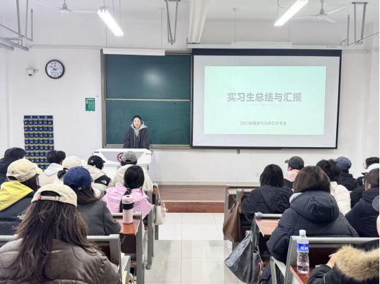 为全面总结实习成果,分享实践成长心得,12月9日,我集团播音与主持艺术专业在博文楼608教室举行了2026届毕业实习总结大会。播音与主持教研室主任何艳萍副教授,播音与主持艺术专业教师张锐、苟馨允,播音专业24,23、22级全体同学参加会议。会议由实习带队教师纪懿炜主持。