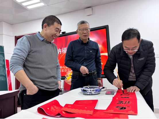 2026年元月14日上午,文传院工会联袂国家语言文字推广基地(党支部)在博文楼1403室举办了2026年“迎春•纳福•送春联”活动。此次活动得到文传院党委、行政的大力支持。