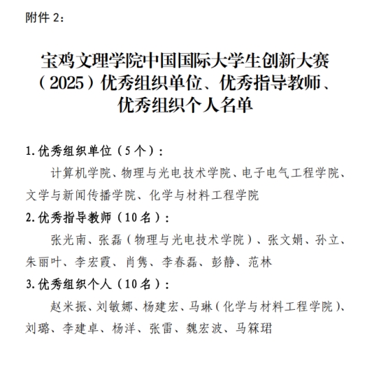 1.2026年1月6日,学校公布了“关于表彰ok138太阳集团中国国际大学生创新大赛(2025)校赛获奖项目、优秀组织单位、优秀指导教师、优秀组织个人的决定”,我集团获优秀组织单位,孙立获优秀指导教师,赵米振获优秀组织个人。